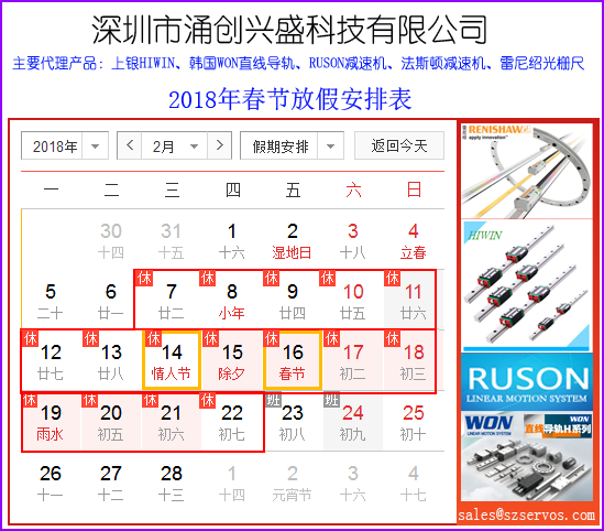 放假期间,为了方便您在节日期间获得我们的客户服务,您可以通过电子邮箱:sales@szservos.com与相关服务人员取得联系。
