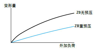 预压力是预先给与钢珠负荷力,亦即加大钢珠直径,利用钢珠与珠道之间负向间隙给与预压,此举能提高直线导轨的刚性及消除间隙;以右图来解释,提高预压力可增加直线导轨刚性。但小规格建议选用轻预压以下预压,以避免因预压选用过重降低其使用寿命。