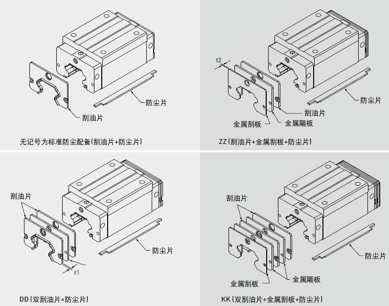 阻止加工铁屑或尘粒进入滑块里面,破坏珠道表面而降低直线导轨寿命。