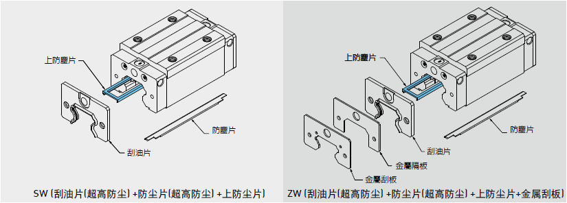加倍刮屑效果,即使在重切削加工环境中,异物完全被排除于滑块外。