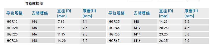 为防止切削粉末或异物经由螺栓孔侵入滑块内部影响精度,客户必须在安装导轨时将螺栓盖打入螺栓孔内,每支导轨出厂时皆配有螺栓盖。