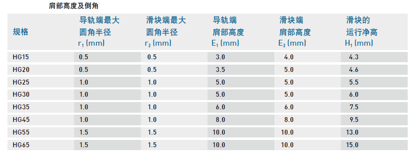 安装直线导轨时必须注意安装面肩部的状况是否适当,如倒角过大,凸出的地方易造成直线导轨精度不良,而高度过高则会干涉滑块。故如果能依照建议要求安装面肩部,安装精度不良即可排除。