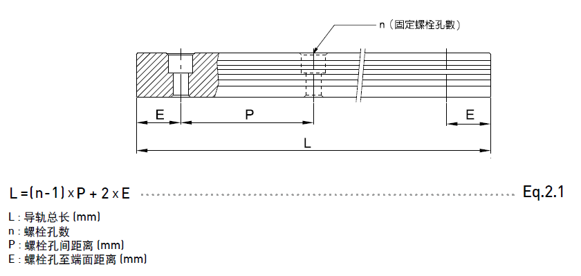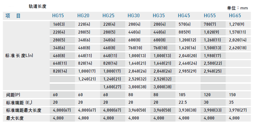 2. 标准端距最大长度是指左、右端距皆为标准端距之导轨最大长度。