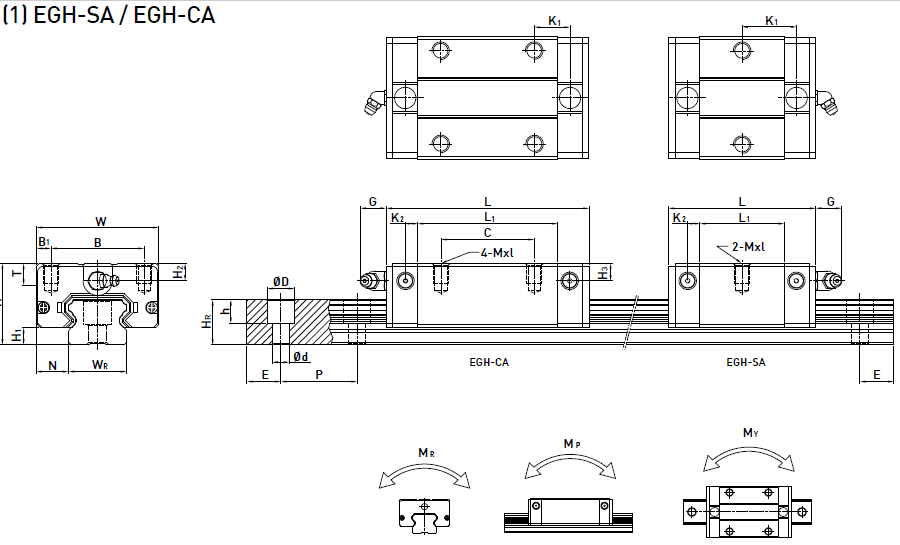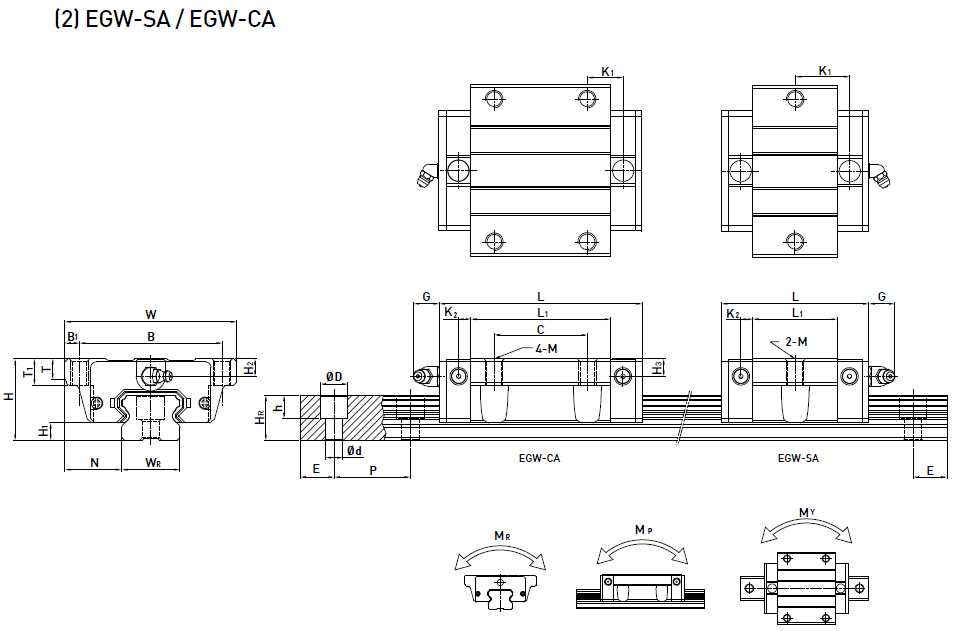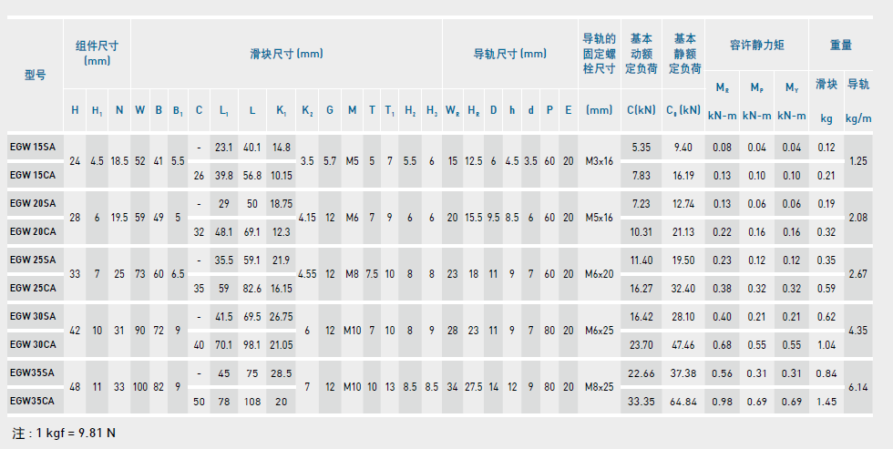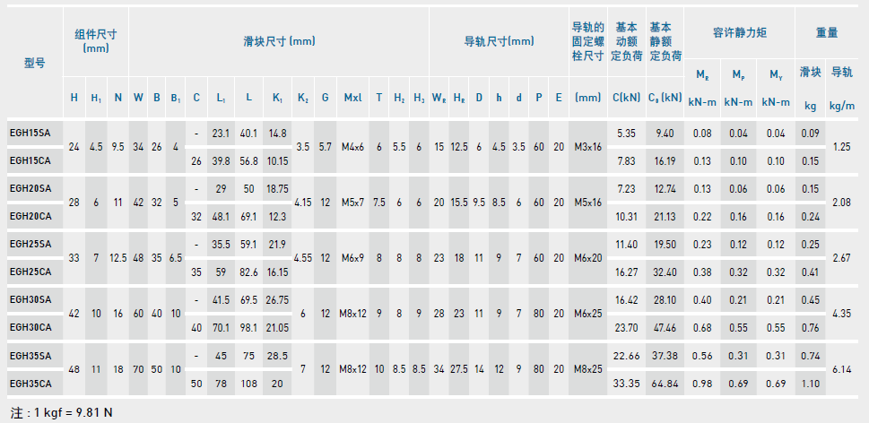 EG系列使用四列钢珠承受负荷设计,使其具备高刚性、高负荷的特性,同时具备四方向等负载特色、及自动调心的功能, 可吸收安装面的装配误差,得到高精度的诉求。 加上降低组合高度及缩短滑块长度,非常适合高速自动化产业机械及空间要求的小型设备使用。