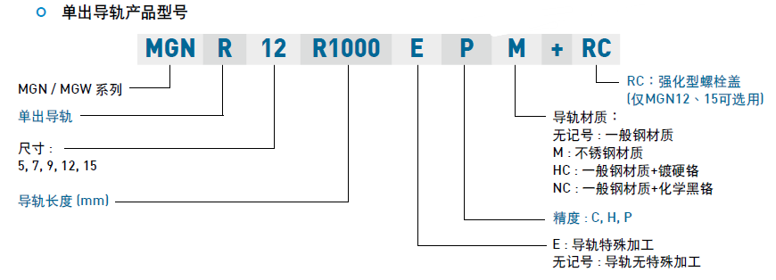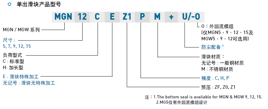 2. MGN及MGW规格9,12,15可选用防尘片。