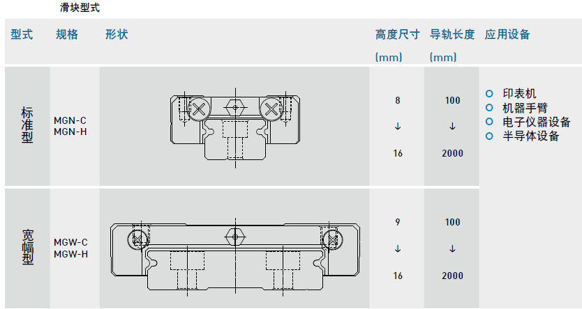 HIWIN提供标准型及宽幅型两种直线导轨,方便客户选型使用。