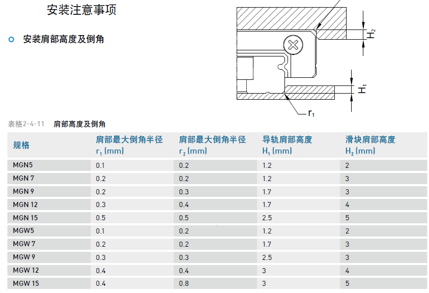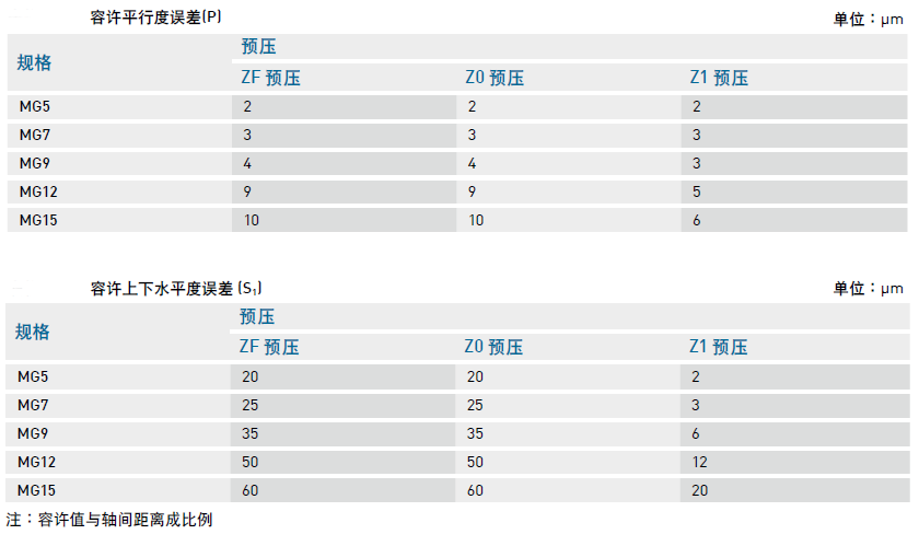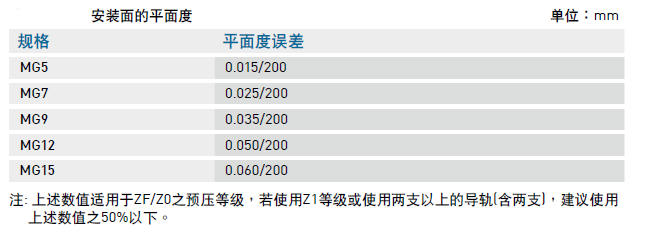 微型滚珠直线导轨MG系列安装平面误差对照表