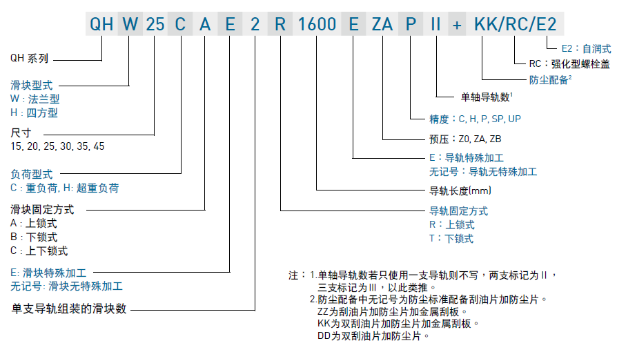 (2) 注: 1.单轴导轨数若只使用一支导轨则不写,两支标记为Ⅱ,