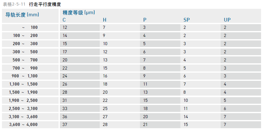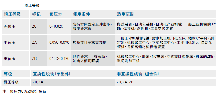 QH 系列直线导轨提供三种标准预压,可依据用途选择适当预压力。