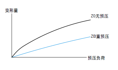 预压力是预先给与钢珠负荷力,亦即加大钢珠直径,利用钢珠与珠道之间负向间隙给与预压,此举能提高直线导轨的刚性及消除间隙;以右图来解释,提高预压力可增加直线导轨刚性。但小规格建议选用轻预压以下预压,以避免因预压选用过重降低其使用寿命。