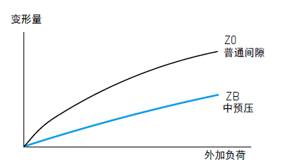 预压力是预先给与钢珠负荷力,亦即加大钢珠直径,利用钢珠与珠道之间负向间隙给与预压,此举能提高直线导轨的刚性及消除间隙;以下图来解释,提高预压力可增加直线导轨刚性。但小规格建议选用轻预压以下预压,以避免因预压选用过重降低其使用寿命。