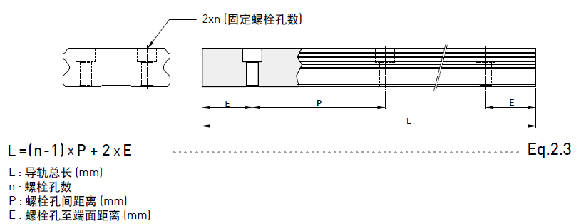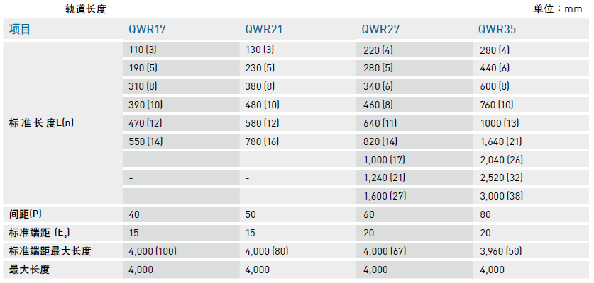 2. 标准端距最大长度是指左、右端距皆为标准端距之导轨最大长度。