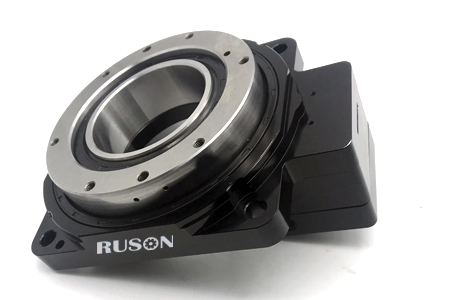 2、高重复定位精度。中空旋转平台采用单级螺旋齿轮减速方式来增大输出扭矩,齿轮精度等级达5级以下,加之灵活的调隙机构,通过改变两齿轮中心距的方式来控制侧隙,使得中空旋转平台的空回极小,重复定位精度在5弧秒以下。