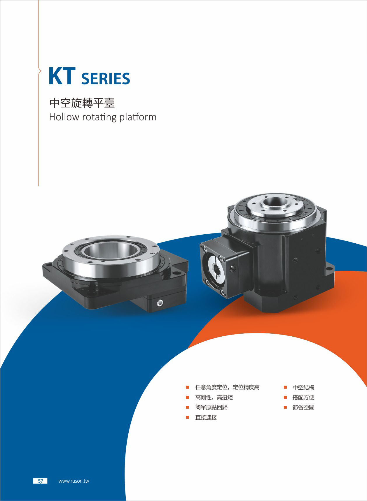 中空旋转平台是一款革命性的新产品。用于多种旋转运动场合。可取代DD MOTOR与凸轮分割器。集高工作效率,高精度,高刚性,高性价比于一身。是旋转运动机构中革命性的产品。在两者之间取得平衡,重复定位精度≦5秒,马达轻松配制,承载稳重,可搭配AC伺服马达或步进马达做任意角度分割,既可满足分割器无法达到之数位控制,定位精度又可媲美DD,下面为